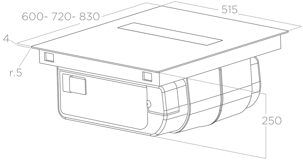 The extractor hob, that fits perfectly in both large and small kitchens. Its sophisticated texture conceals a powerful air extraction system, activated with a simple flick of the central flap.