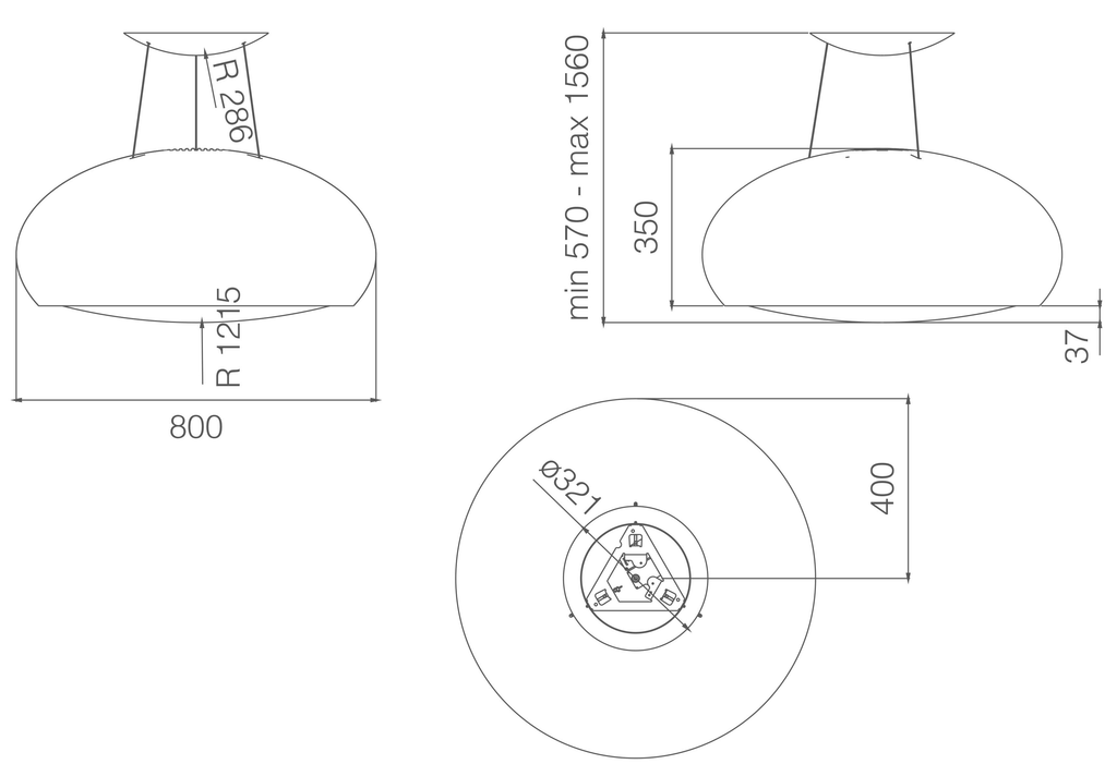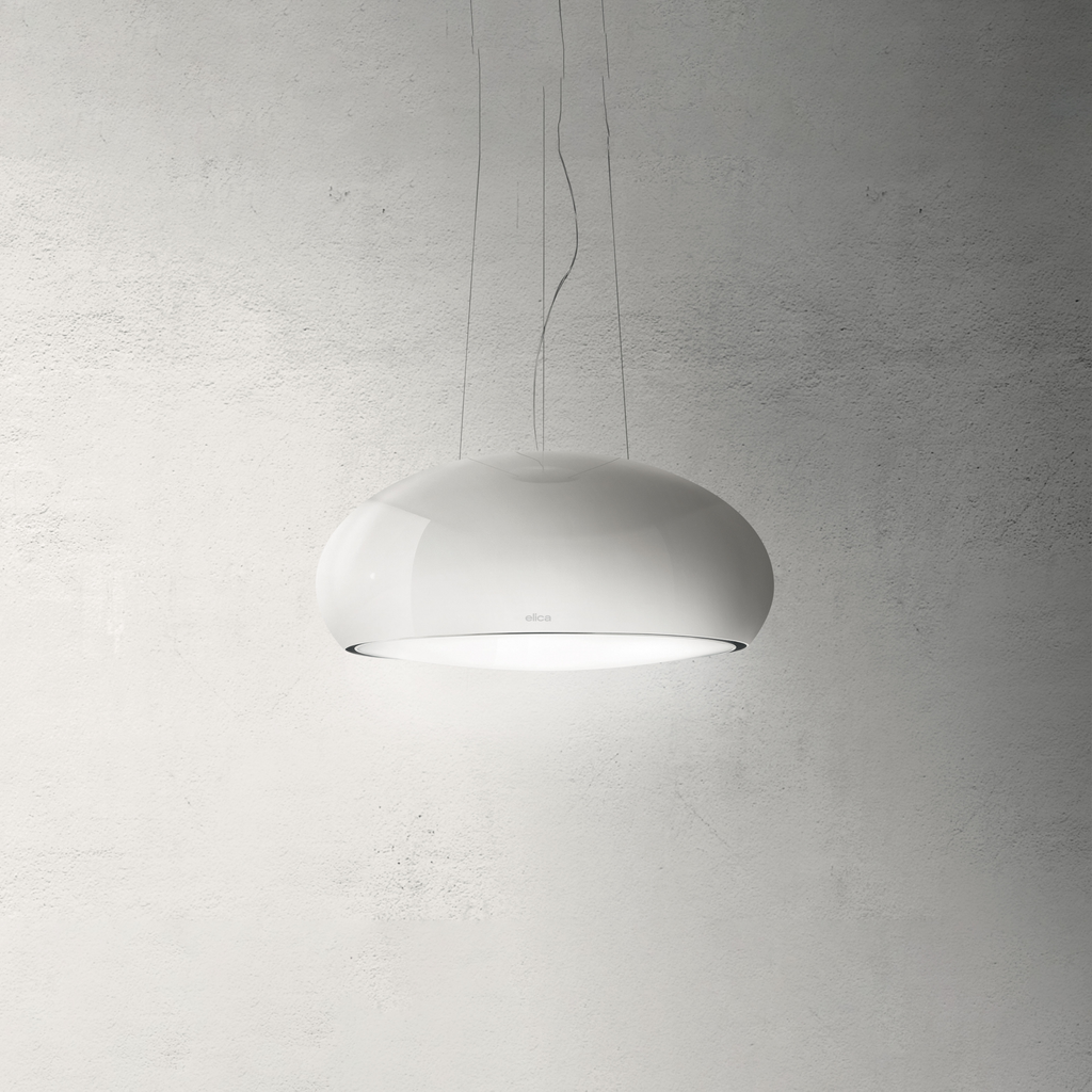 This chandelier-style hood, gracefully suspended over the hob, removes fumes while enhancing the design of your kitchen. Available in white, black and mirror polished stainless steel.