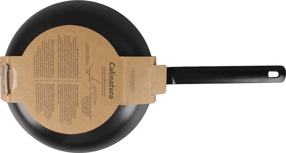 It consists in applying a layer of oil (in this case corn oil) to the surface of the utensil and heating it (by baking), thus creating a protective, non-stick layer that becomes stronger over time. The non-stick properties of cast iron are reinforced and the protection is 100% natural.